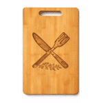Laser engraved bamboo cutting boards customized with your design. A functional and elegant gift for kitchens, weddings, and corporate branding.