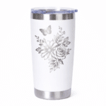 Laser engraved powder-coated tumblers with permanent, high-contrast designs. Premium drinkware customized for gifts or business branding.