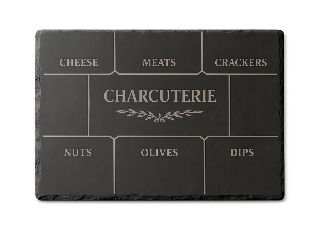 Premium laser engraved slate boards customized for serving, décor, or display. Durable, elegant, and professionally engraved to order.