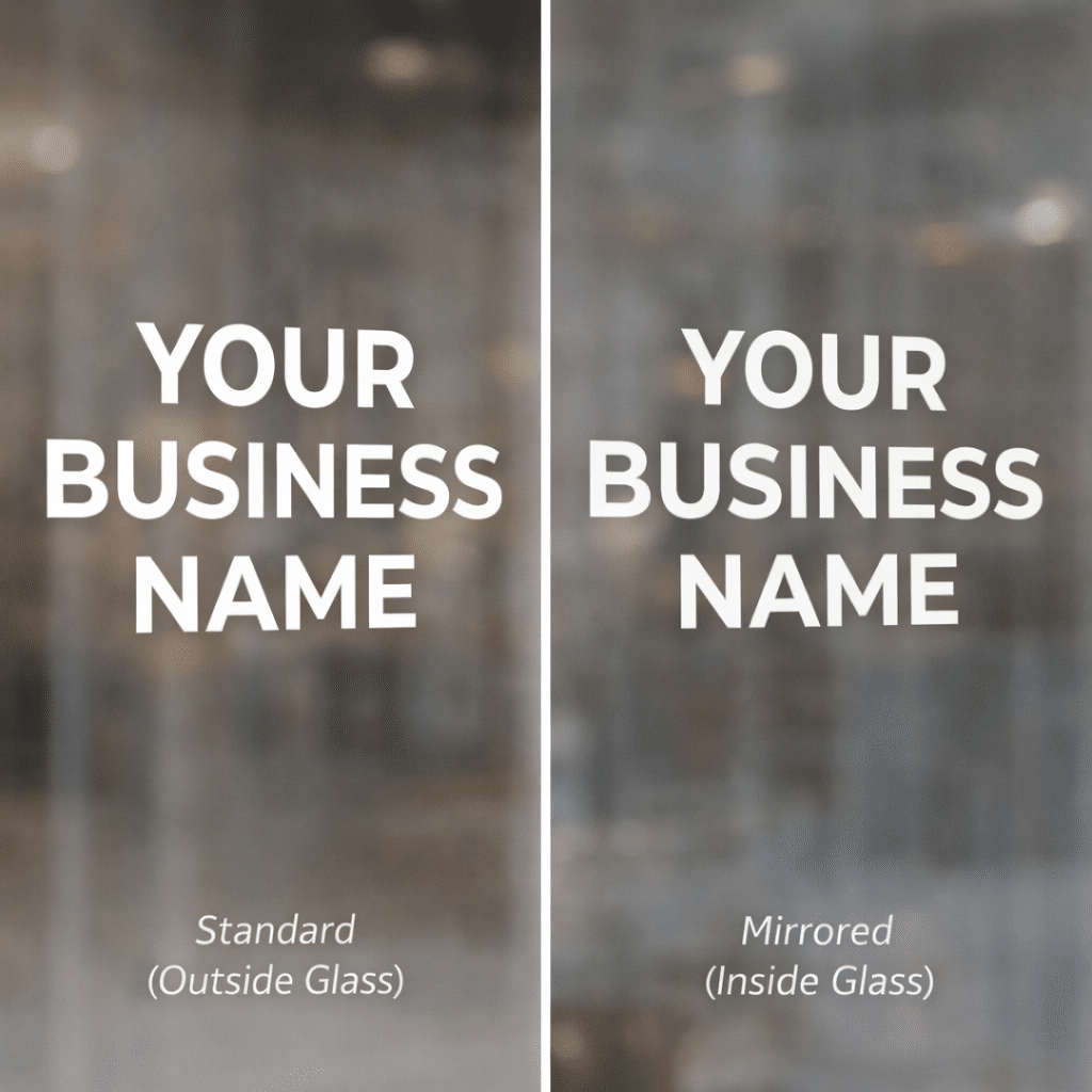 A: Yes — choose the mirror option for inside-glass installation visible from outside.